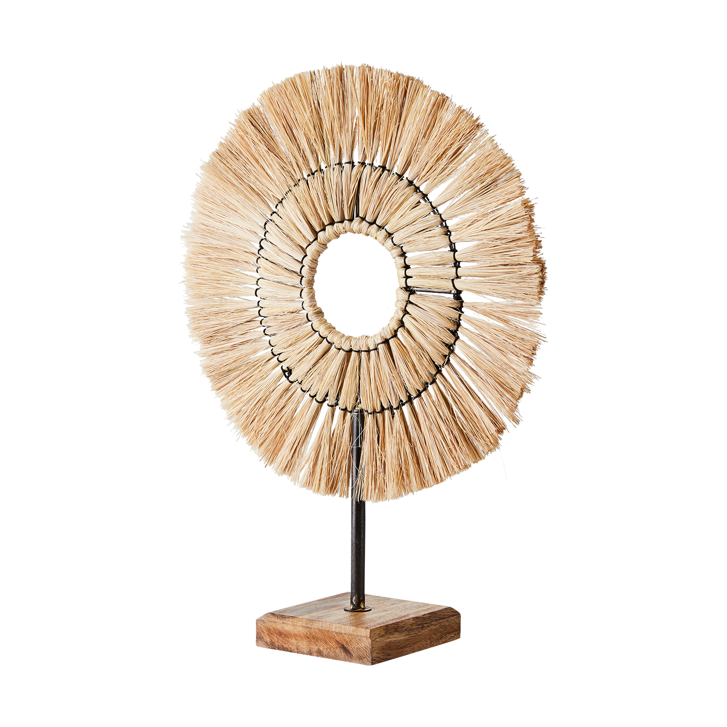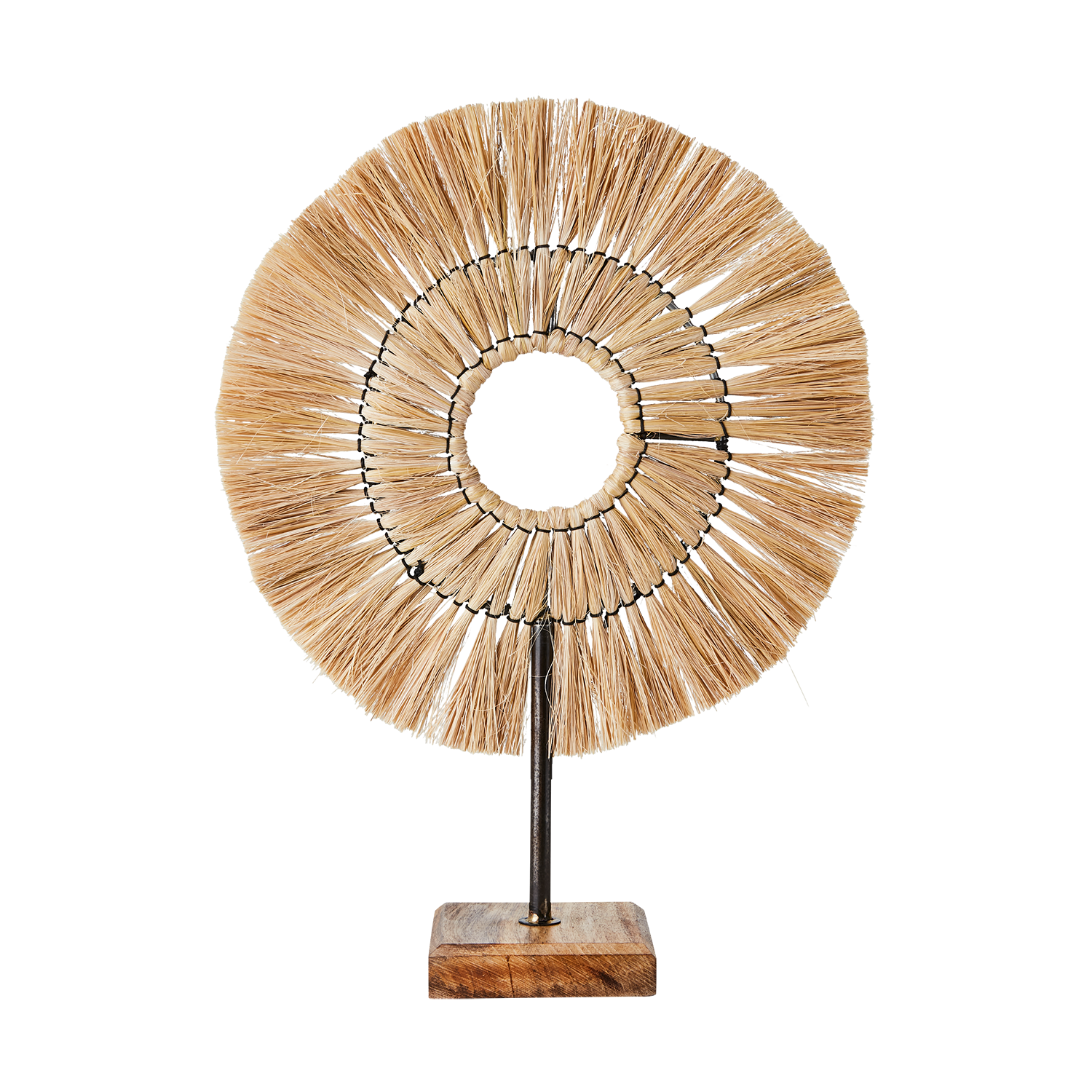 - Material: Halm, järn, trä
