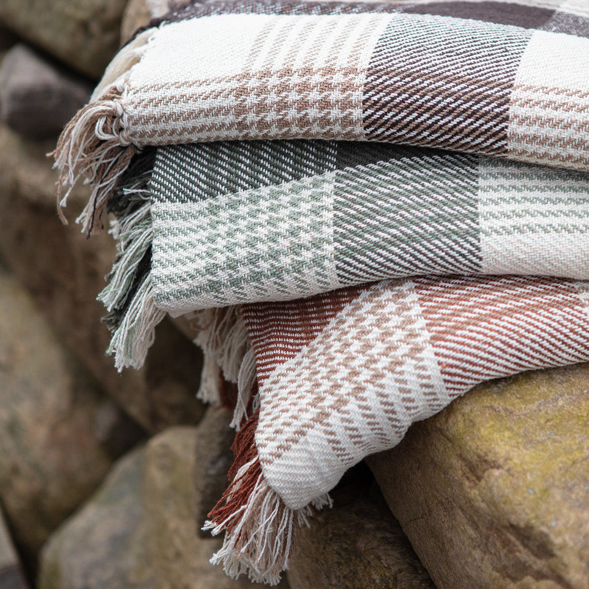 Skapa en varm och hemtrevlig känsla i ditt hem med vår filt ANNA. Den klassiska rutdesignen i harmoniska toner av brun, beige och elfenben gör den tidlös och enkel att matcha med både modern och traditionell inredning. Med sina mjuka fransar blir den en vacker detalj som ger rummet ett ombonat uttryck.