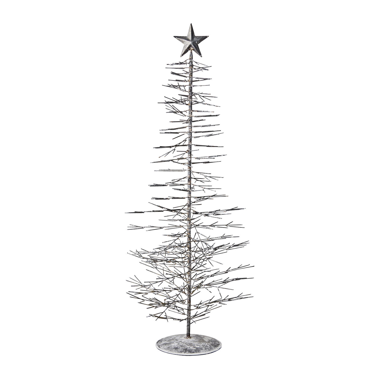 FENIX är en dekorativ julgran i metall med en rustik grå/vit finish som sprider en modern och industriell känsla till julens inredning. Granens stilrena design och stjärna i toppen gör den till en vacker detalj både ensam och tillsammans med andra juldekorationer. Perfekt för dig som vill skapa en stämningsfull jul med en twist av nordisk minimalism.