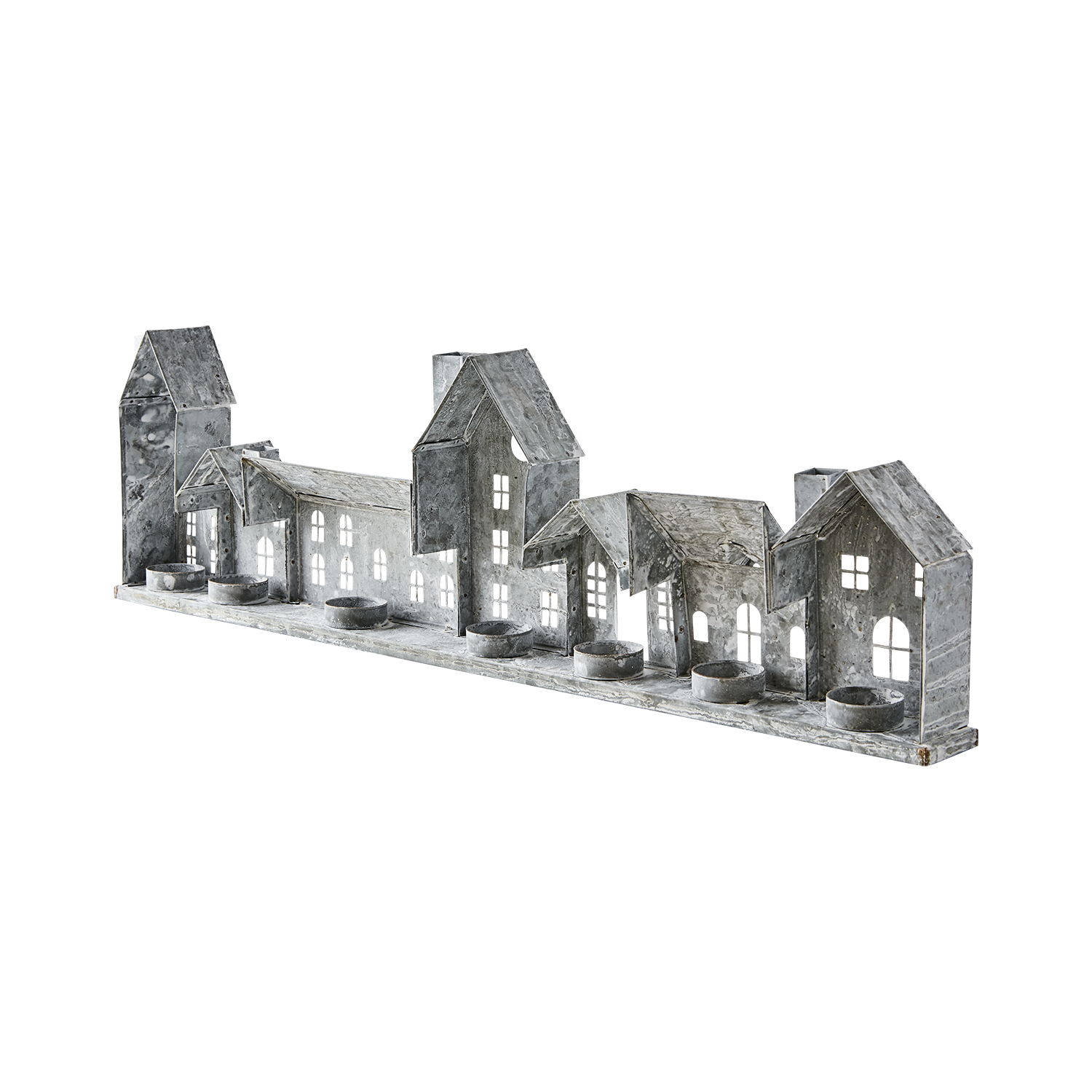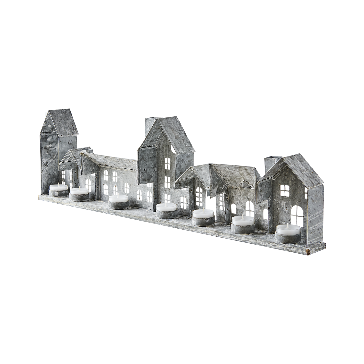 FENIX Ljuslykta hus, Grå/vit 68x20cm