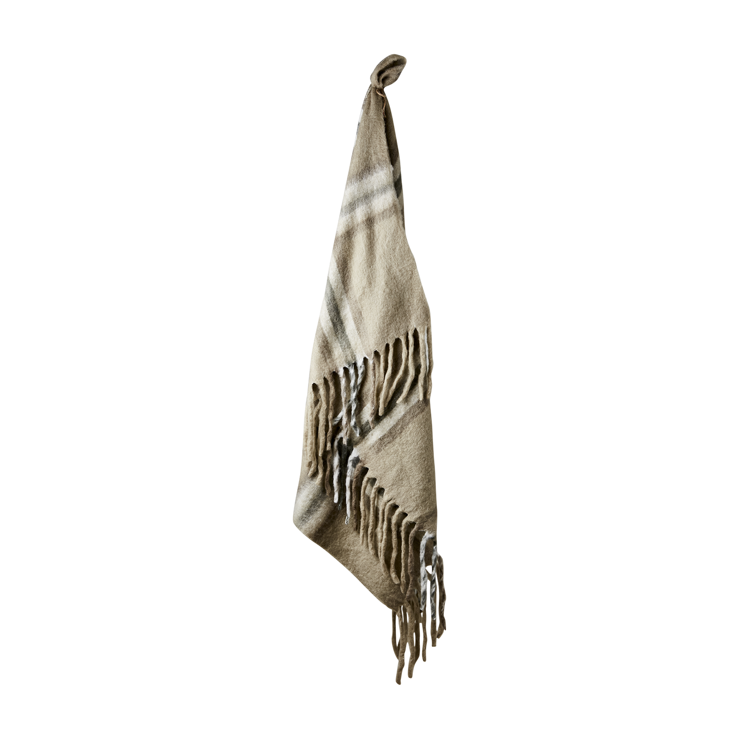 En mjuk och inbjudande filt med ett vackert rutmönster i beige, grå och gröna nyanser. FRASSE skapar en varm och harmonisk känsla i hemmet. Perfekt för svala kvällar eller som en dekorativ detalj i soffan. De långa fransarna och de dova tonerna ger filten en naturnära och avslappnad karaktär som passar lika bra i vardagsrummet som i sovrummet.