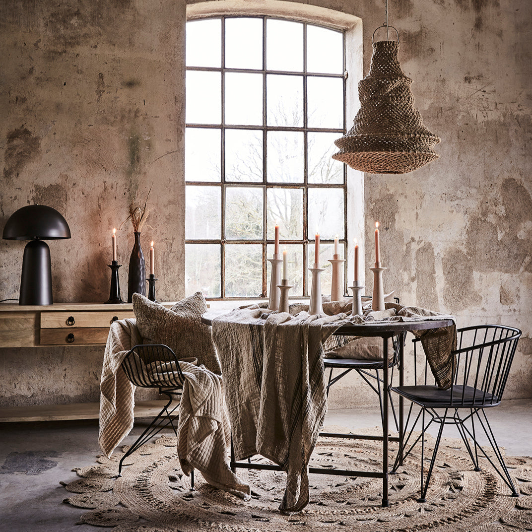 - Kombinera med naturmaterial som trä och linne för att framhäva lampans jordnära uttryck.