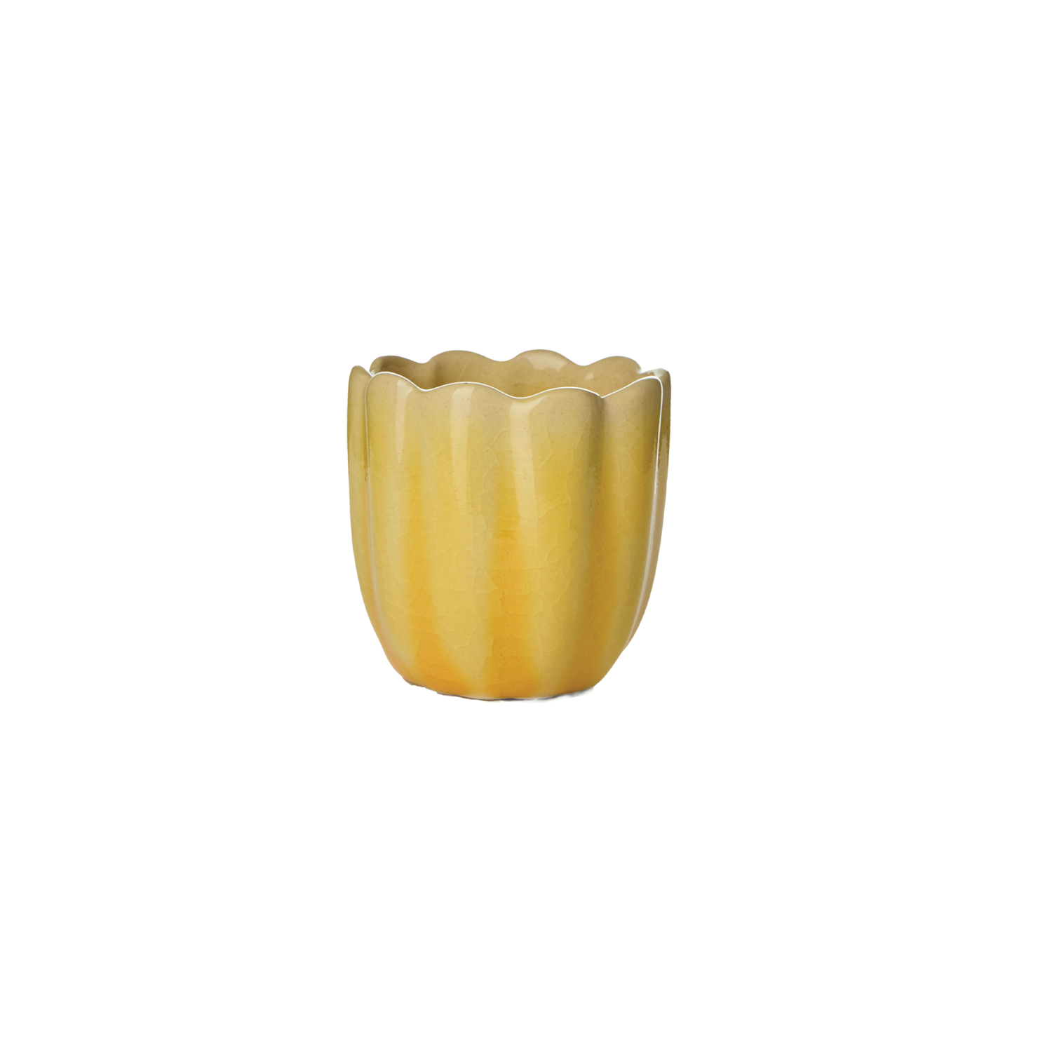 HULDA äggkopp i gul nyans tillför ett glatt och livfullt inslag till frukostbordet eller påskdukningen. Den vågiga kanten och den glaserade ytan i stengods skapar ett mjukt uttryck med en lekfull touch. En liten men dekorativ detalj som med fördel kombineras med andra färger i HULDA-serien för en färgstark start på dagen.