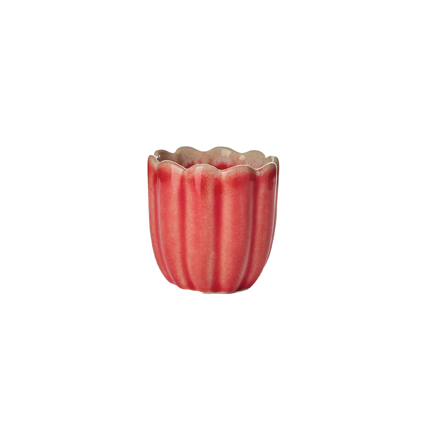 HULDA äggkopp i korallrött är en livfull detalj till frukostbordet. Den vågiga kanten och den glaserade ytan ger ett mjukt och organiskt uttryck, perfekt att kombinera med koppar och tallrikar i serien.