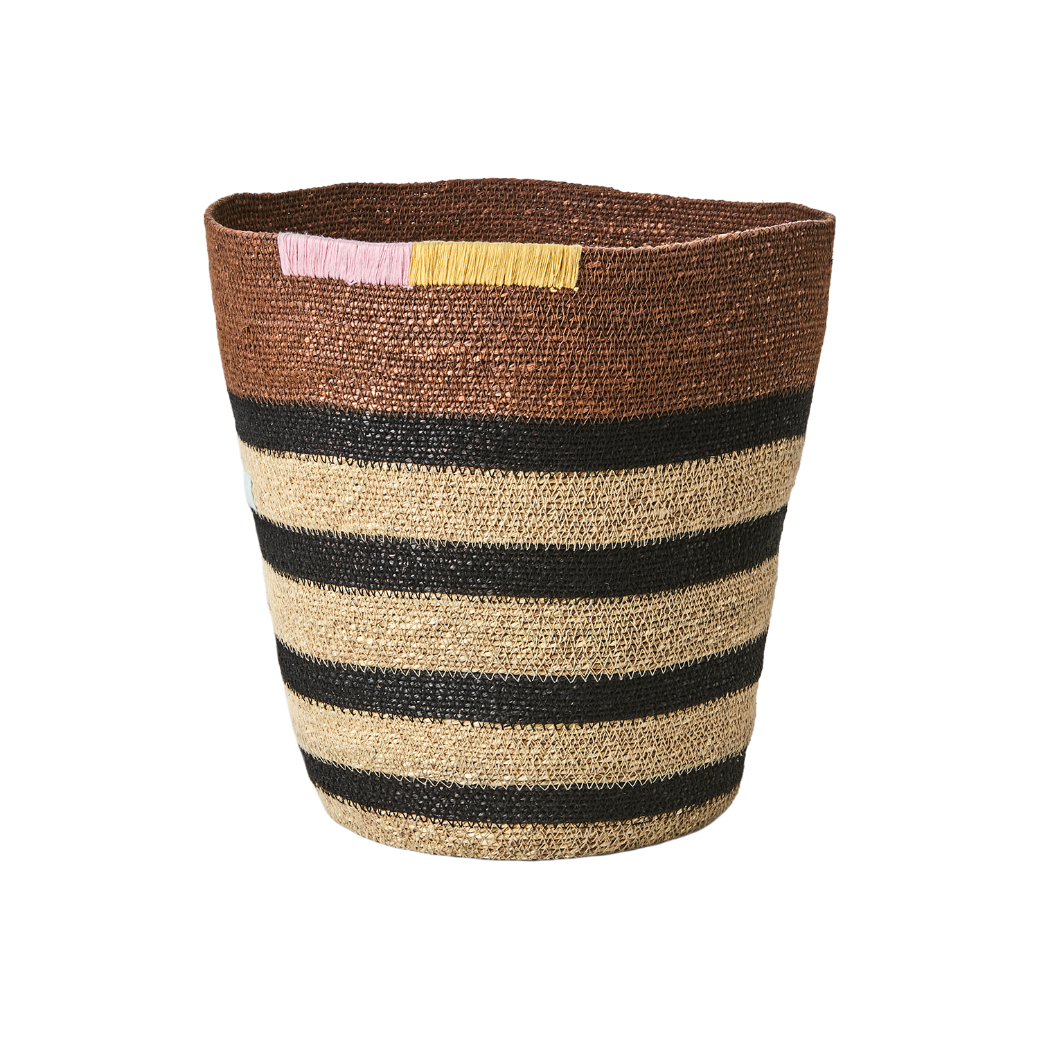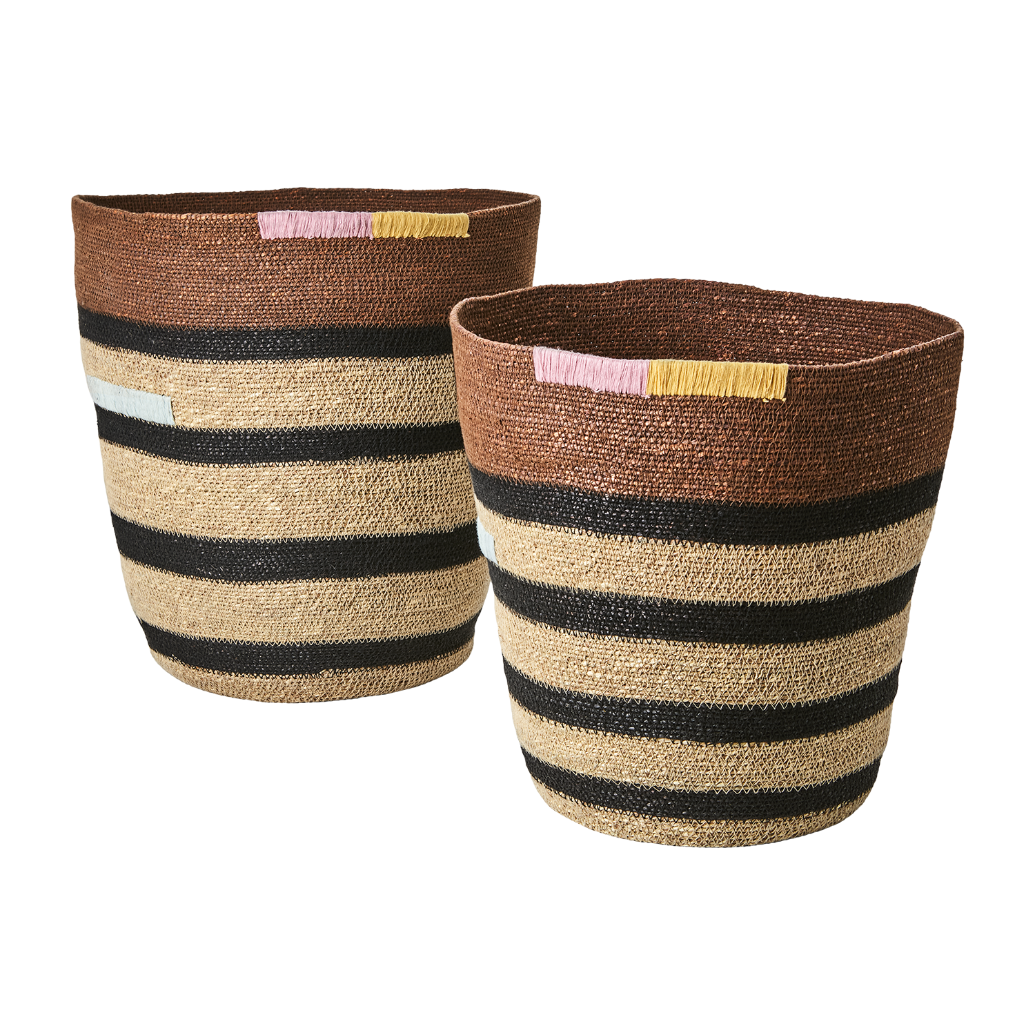 Lyft fram värmen och karaktären i ditt hem med våra MADIBA korgar, ett set om två handgjorda korgar i vackra naturfärger . De jordnära tonerna i svart, brun och beige skapar en harmonisk känsla som passar lika bra i det moderna hemmet som i en mer bohemisk inredning. Korgarna är både funktionella och dekorativa, perfekta för att samla upp vardagens småsaker samtidigt som de blir ett stilfullt inslag i rummet. Den generösa formen gör dem praktiska för allt från filter och kuddar till leksaker eller tvätt.