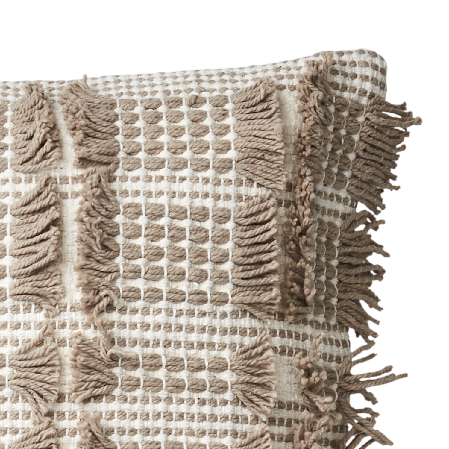 Ge ditt hem en varm och inbjudande känsla med kuddfodralet MINNA. Tillverkat i naturliga toner med handvävda detaljer, fransar och vackra strukturer som skapar ett levande och unikt uttryck. Kuddfodralet är lika snyggt som solitär på soffan som tillsammans med andra kuddar i olika former och material.