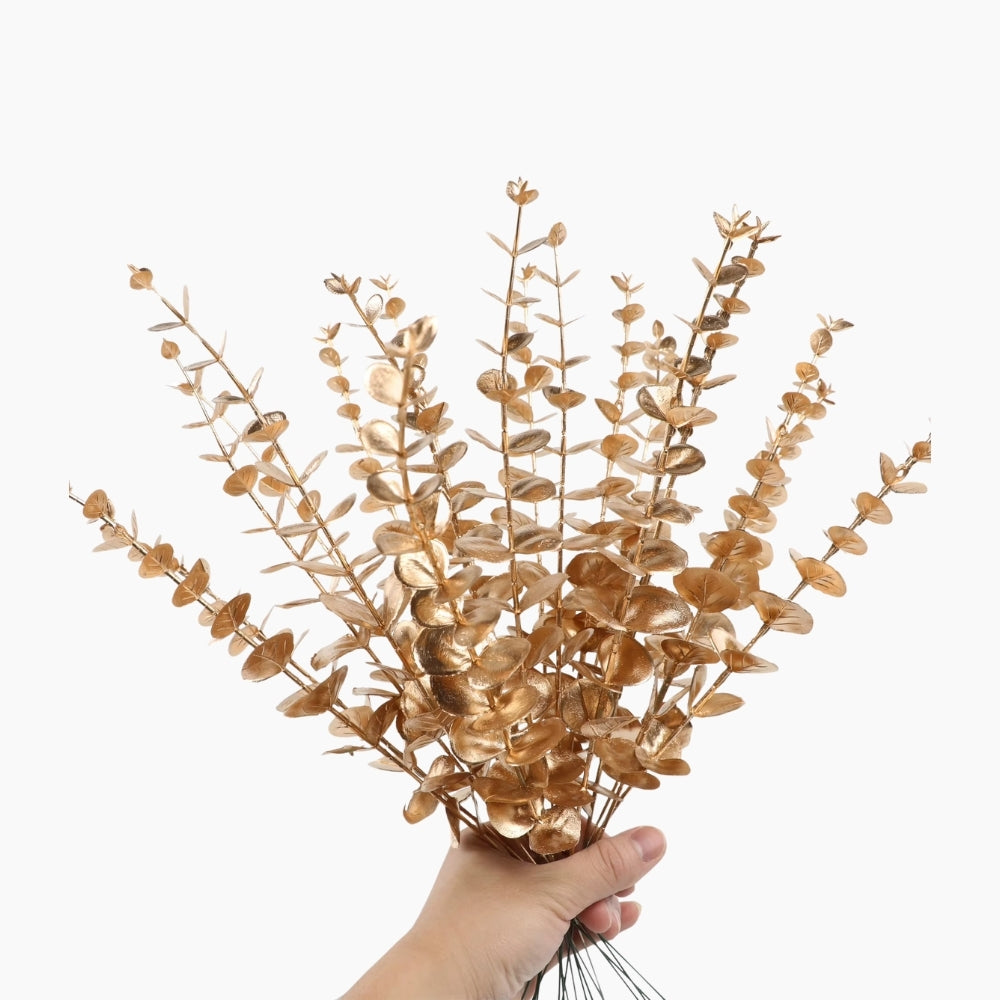 Varje stjälk är tillverkad av mjuk PE-plast med matt, lätt pudrad finish som imiterar den naturliga eukalyptusens frodiga bladverk. Den inbyggda ståltråden gör grenarna böjbara – perfekt när du vill forma kransar, buketter eller vasearrangemang utan att bladen tappar sitt realistiska fall.