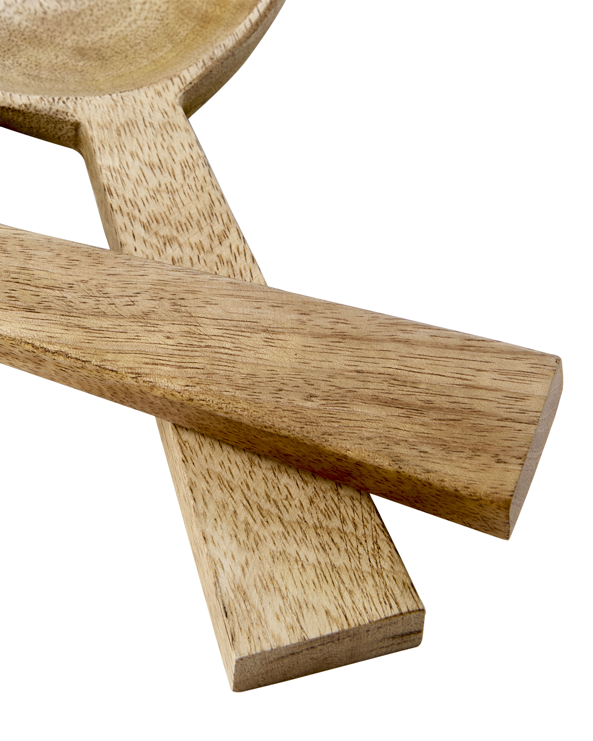 NICO salladsbestick i naturfärgat trä är ett rustikt och funktionellt tillskott till varje dukning. Det handgjorda uttrycket tillsammans med träets naturliga struktur ger en varm och inbjudande känsla vid servering. Med sin breda form och lena finish blir de både bekväma att använda och vackra att duka fram. Salladsbesticken är matcertifierade och bör diskas för hand för att bevara träets kvalitet och naturliga glans.
