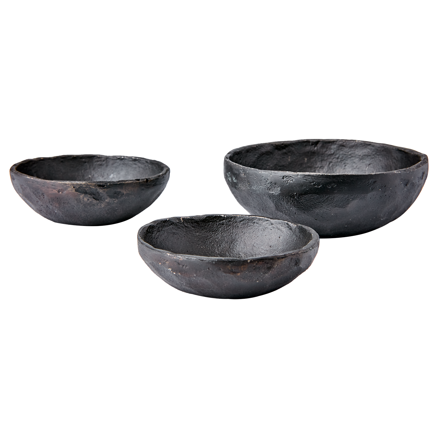 ODIN är ett rustikt och elegant set med tre handgjorda skålar i järn. Deras råa yta och mörka nyans skapar ett vackert, industriellt uttryck som ger karaktär till vilket rum som helst. Varje skål har sin egen unika struktur och finish, vilket gör dem lika mycket konstverk som funktionella föremål. Perfekta för att samla småsaker, servera snacks eller som dekorativa inslag i en naturnära inredning.