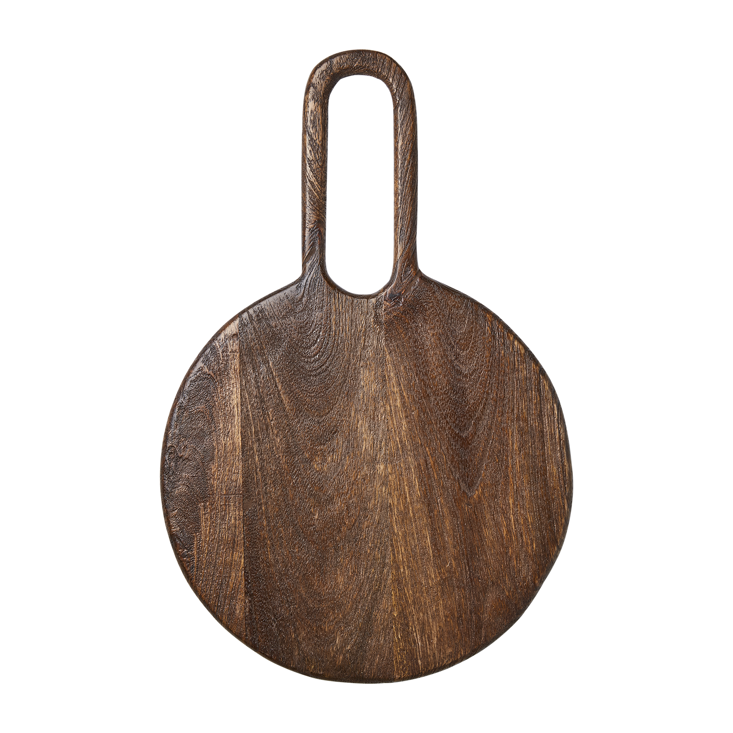 En elegant och rustik skärbräda i mörkbrunt mangoträ som kombinerar funktion med design. PORTLAND har en vacker rund form med ett generöst handtag som gör den enkel att hantera och förvara. Varje bräda är unik med naturliga ådringar och variationer i träet, vilket ger ett varmt och levande uttryck. Perfekt som serveringsbräda till ost, tapas eller bröd eller som en dekorativ detalj i köket.