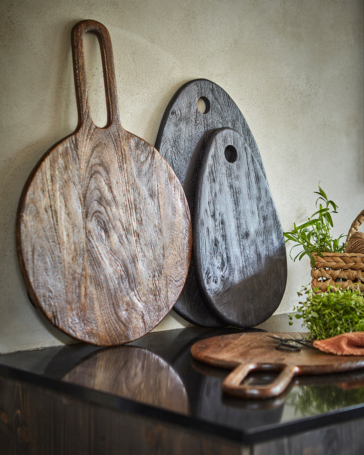 - Låt skärbrädan stå lutad mot väggen på köksbänken tillsammans med en vas eller mortel för en inbjudande känsla.