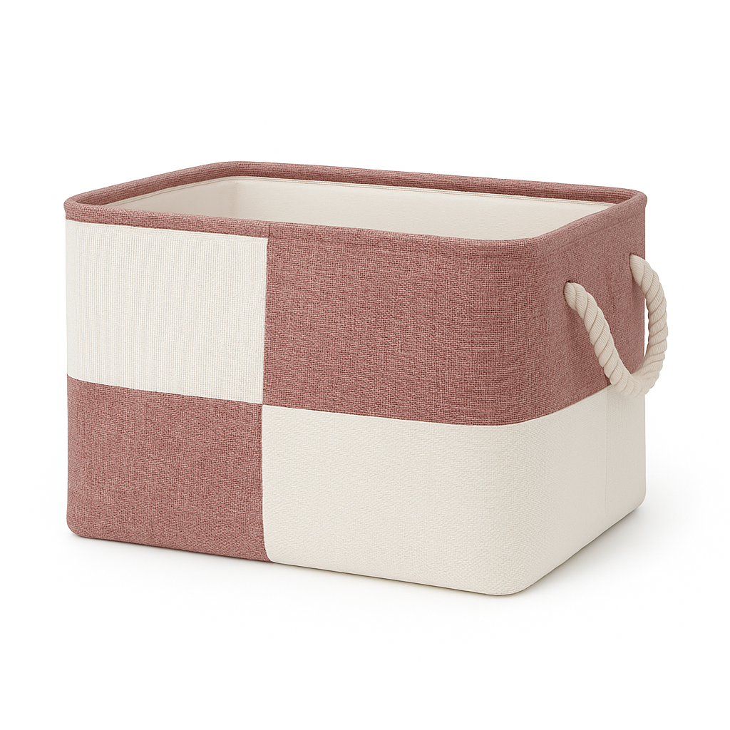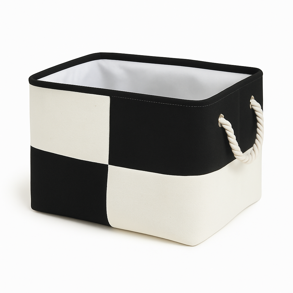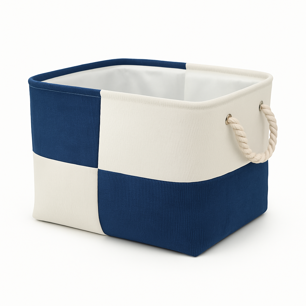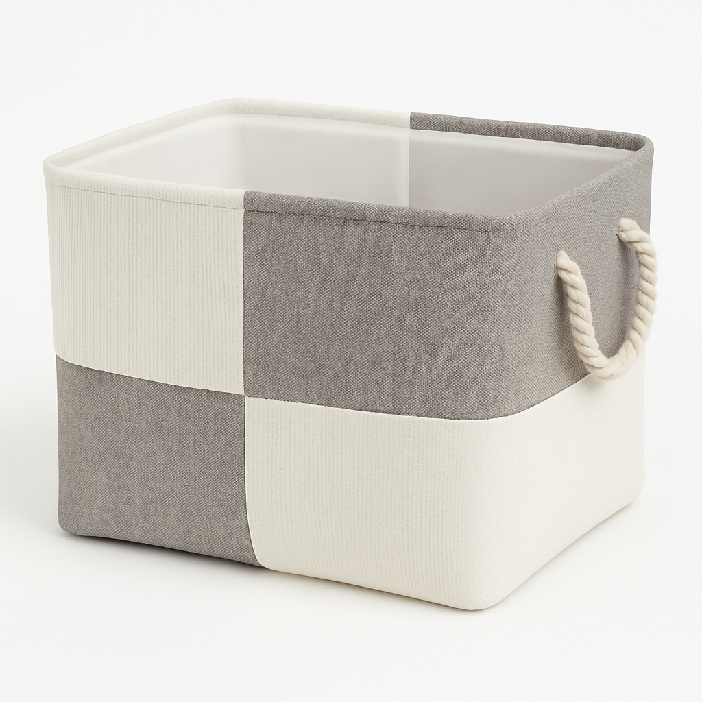 Med sin rutiga design i dovt dämpade färger blir korgen både ett praktiskt förvaringsalternativ och en dekorativ inredningsdetalj. Det textilklädda ytskiktet ger en mjuk och varm känsla medan de stadiga rep-handtagen i bomull ger ett rustikt uttryck. Rutig passar perfekt i hallen, barnrummet, vardagsrummet eller tvättstugan, oavsett om du vill förvara filtar, leksaker, kläder eller vardagsting. Finns i flera harmoniska färgkombinationer som enkelt smälter in i en naturnära inredningsstil.