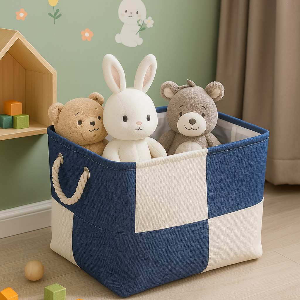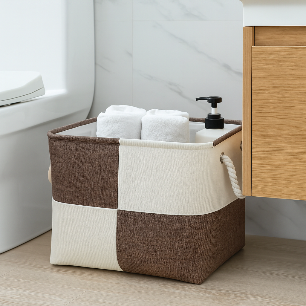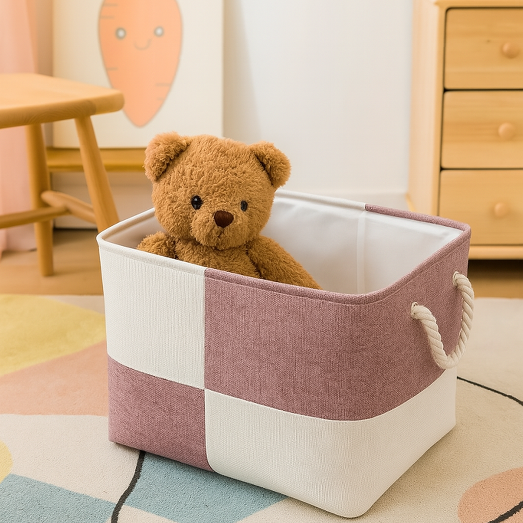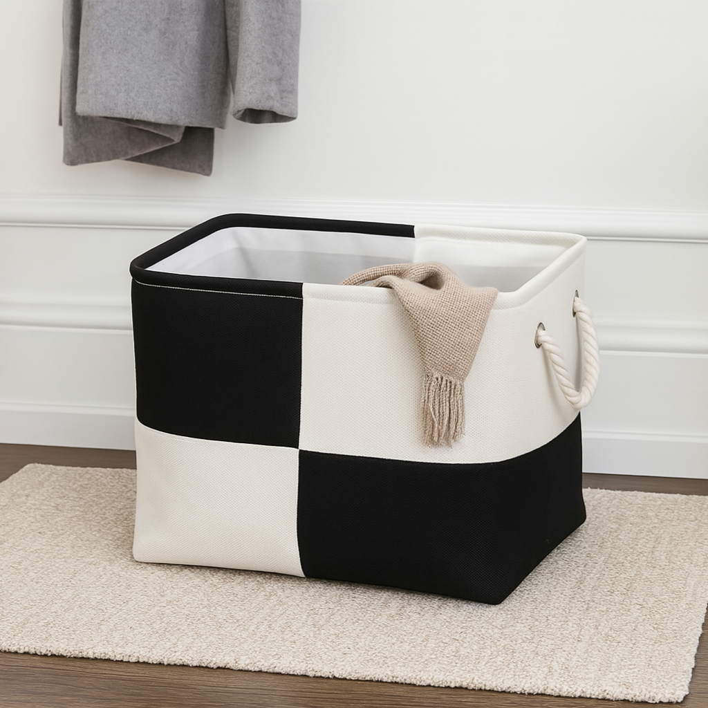 Med sin rutiga design i dovt dämpade färger blir korgen både ett praktiskt förvaringsalternativ och en dekorativ inredningsdetalj. Det textilklädda ytskiktet ger en mjuk och varm känsla medan de stadiga rep-handtagen i bomull ger ett rustikt uttryck. Rutig passar perfekt i hallen, barnrummet, vardagsrummet eller tvättstugan, oavsett om du vill förvara filtar, leksaker, kläder eller vardagsting. Finns i flera harmoniska färgkombinationer som enkelt smälter in i en naturnära inredningsstil.