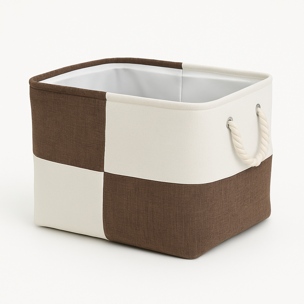 - Material: Tyg (linne/polyester-blandning) med innerfoder i PE-belagd polyester