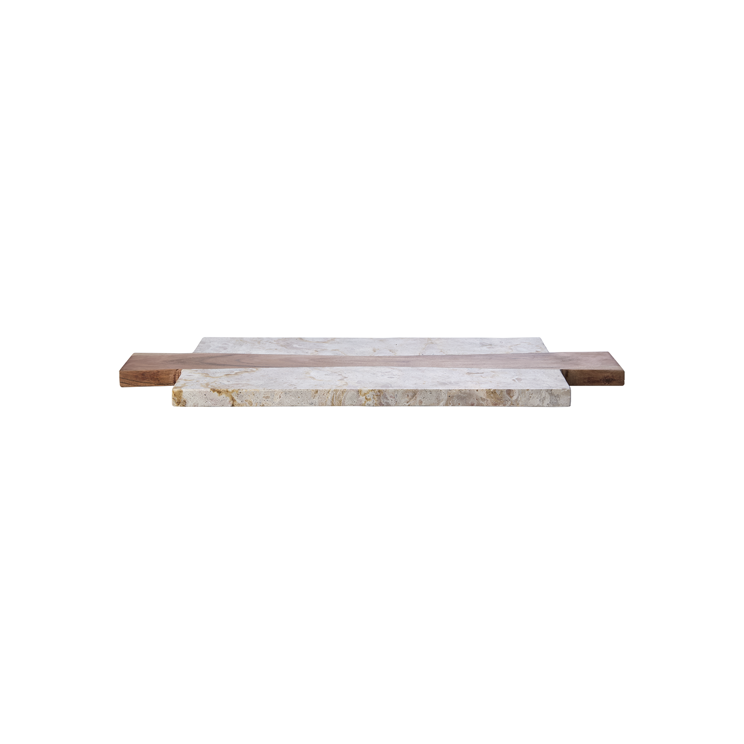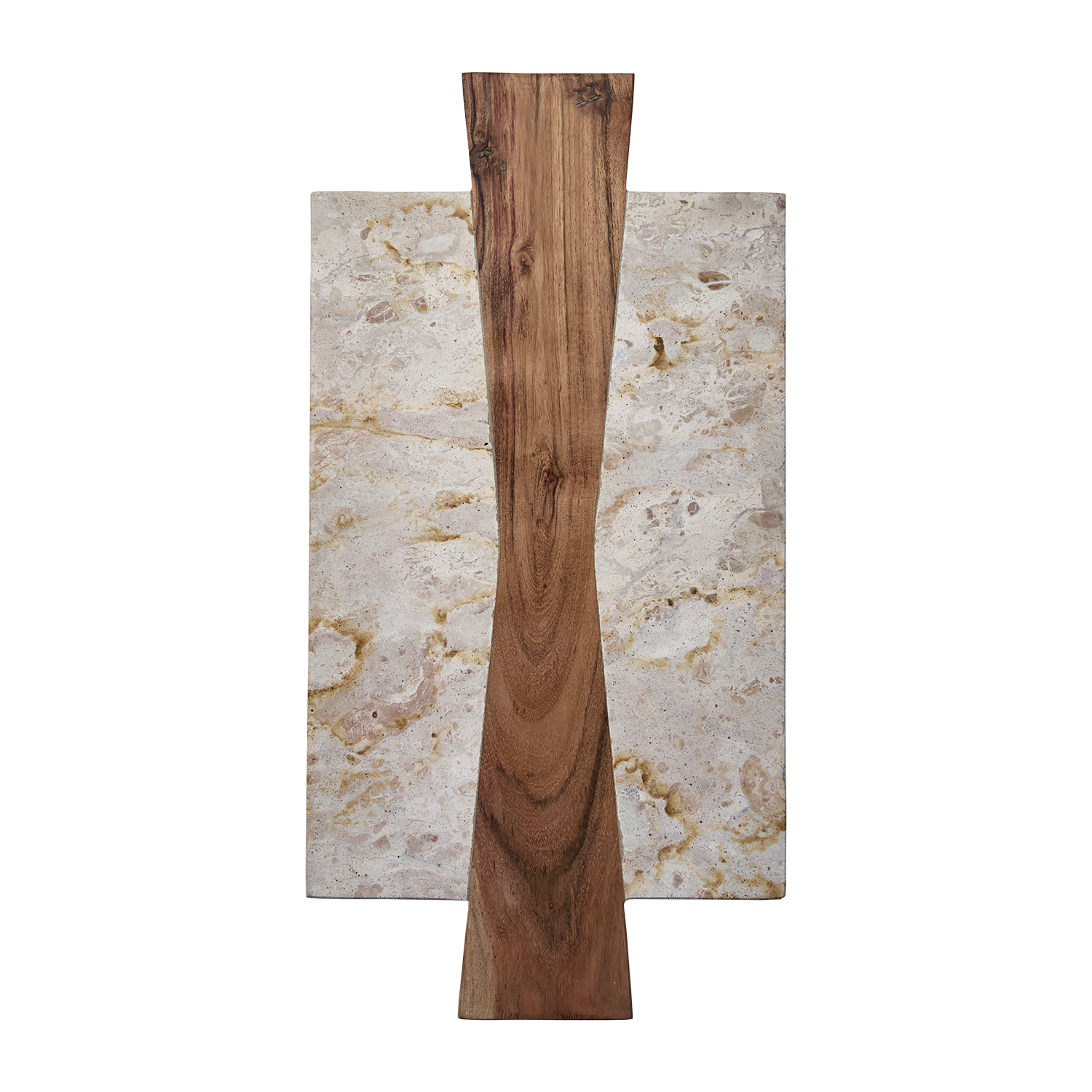 En elegant och funktionell skärbräda i beige butterscotch marmor och akasia trä, designad för både matlagning och servering. Marmor har en slitstarka yta som gör den idealisk för att skära bröd, frukt och grönsaker, medan den stilrena designen gör att den även fungerar som en dekorativ serveringsbricka.