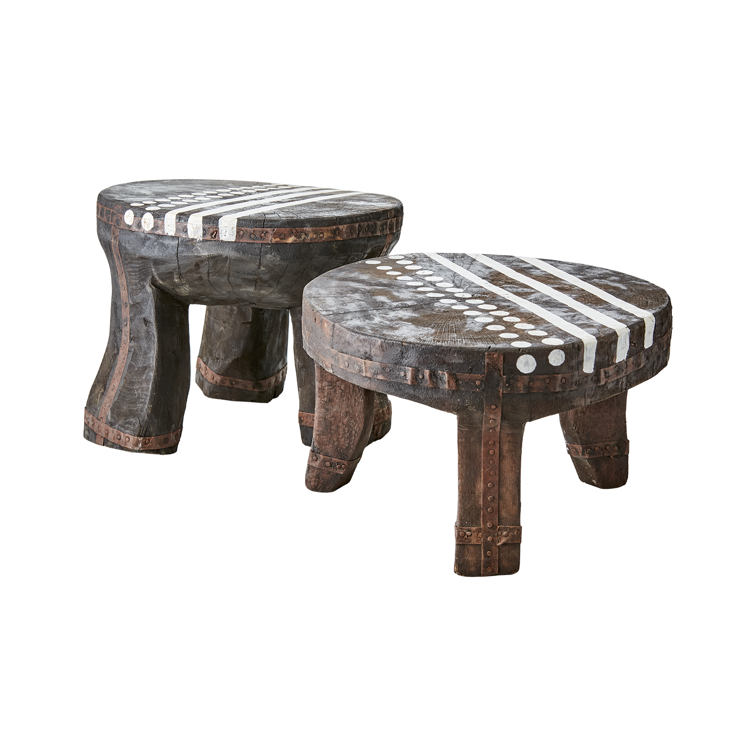 En unik pall med rustik karaktär och handgjorda detaljer som gör varje exemplar helt speciellt. Tillverkad i trä med robusta metallbeslag som skapar en känsla av vintage och hantverk. Den varma bruna visa och det råa uttrycket gör att pallen både fungerar som ett praktiskt sittmöbel och som en dekorativ detalj i hemmet.