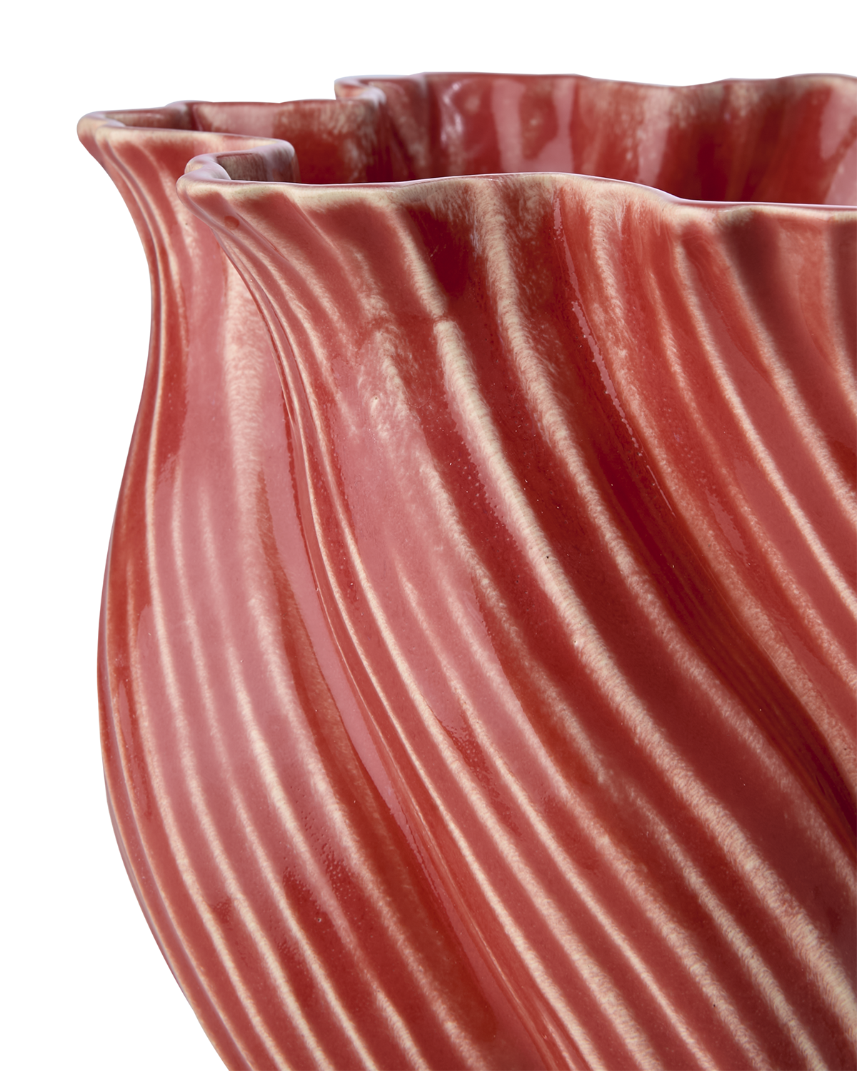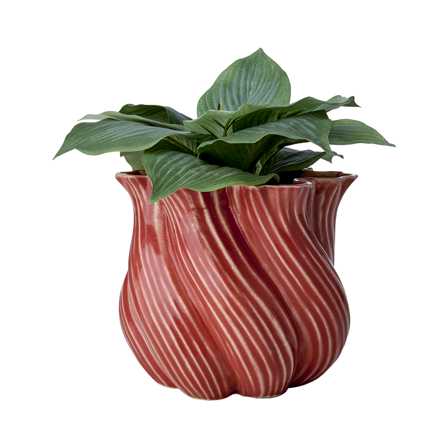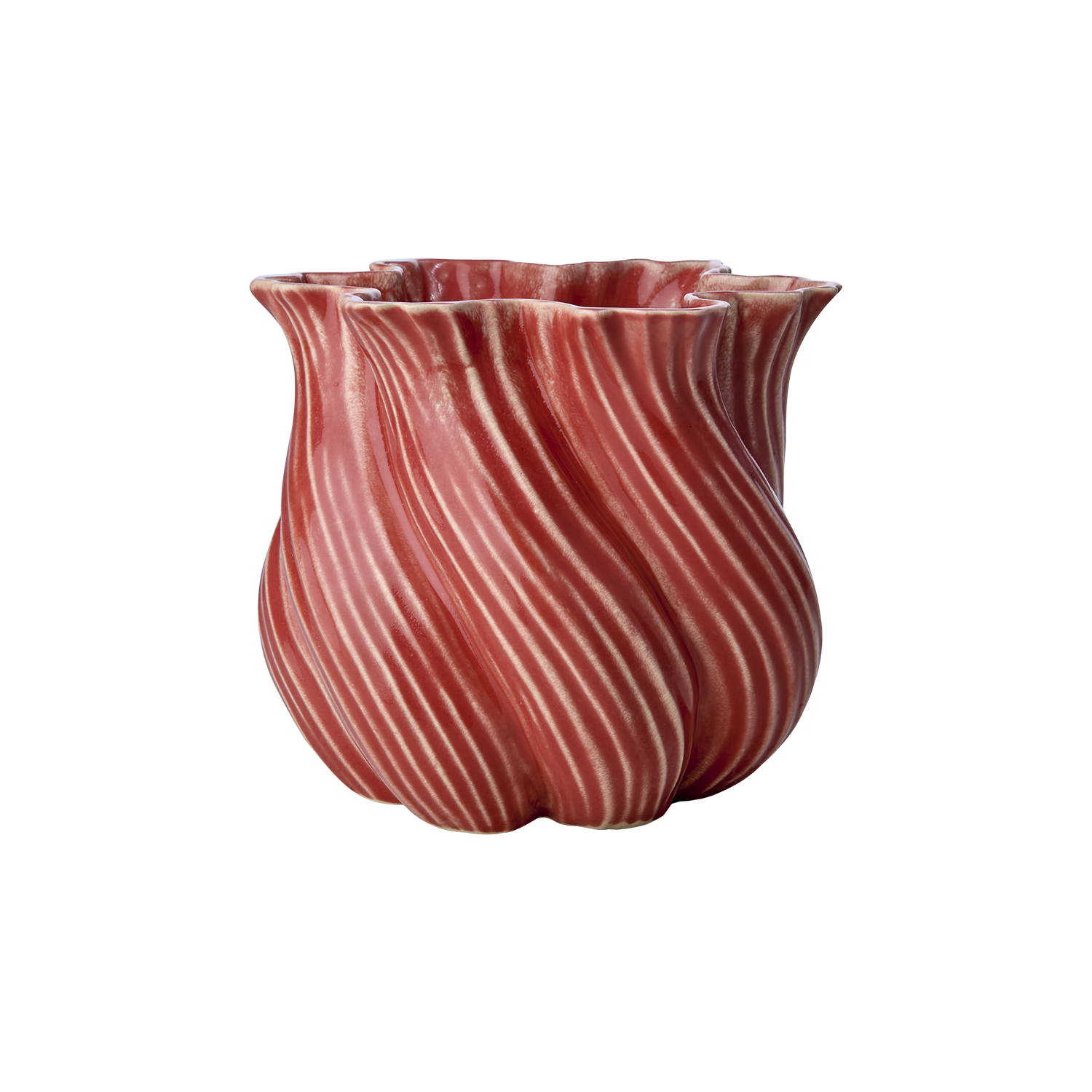 TWIST vas i korallröd nyans erbjuder en djärv och modern estetik till ditt hem. Den vridna formen i stengods skapar en dynamisk och iögonfallande silhuett, medan den korallröda färgen tillför en livlig touch. Vasens egenskaper gör den perfekt för att husera färska blommor eller stå som en självständig dekorativ detalj. Med måtten Ø20xH18 cm blir den ett centralt inslag i din inredning