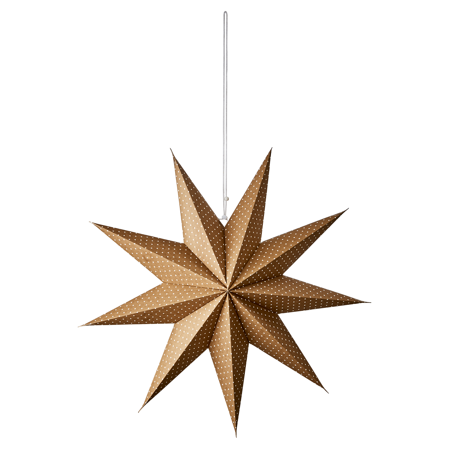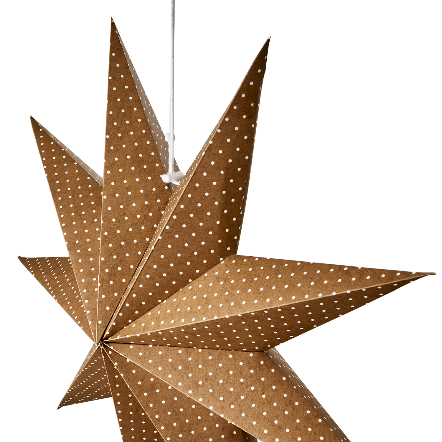 Skapa en stämningsfull och varm känsla i hemmet med UNI Stjärna. Den vackra bruna ytan med små vita prickar ger en naturnära men lekfull touch som gör den lika fin i fönstret som i ett hörn av rummet. Den generösa storleken gör stjärnan till ett riktigt blickfång. Perfekt för både advent och jul, men lika vacker året runt som en dekorativ detalj.